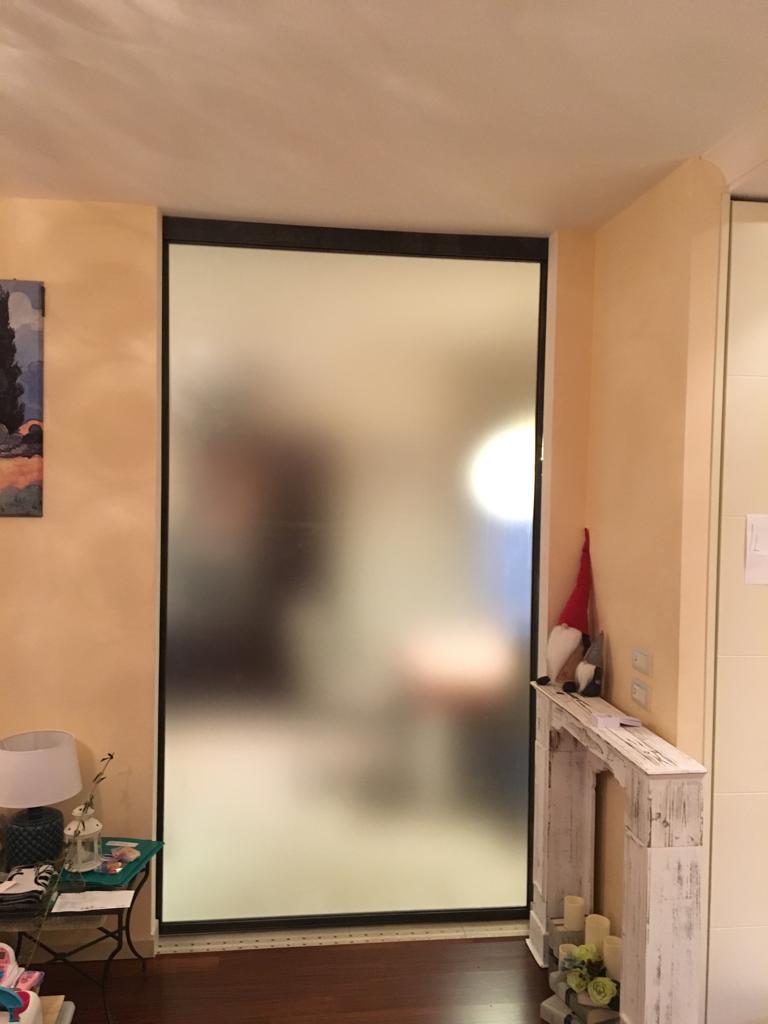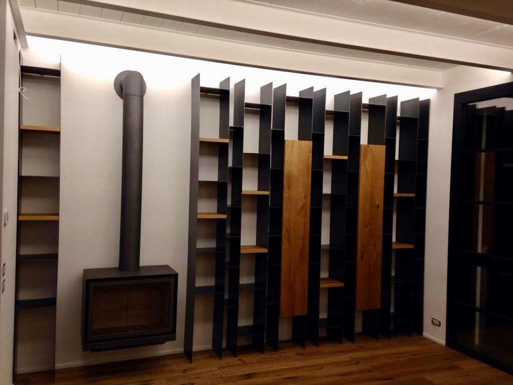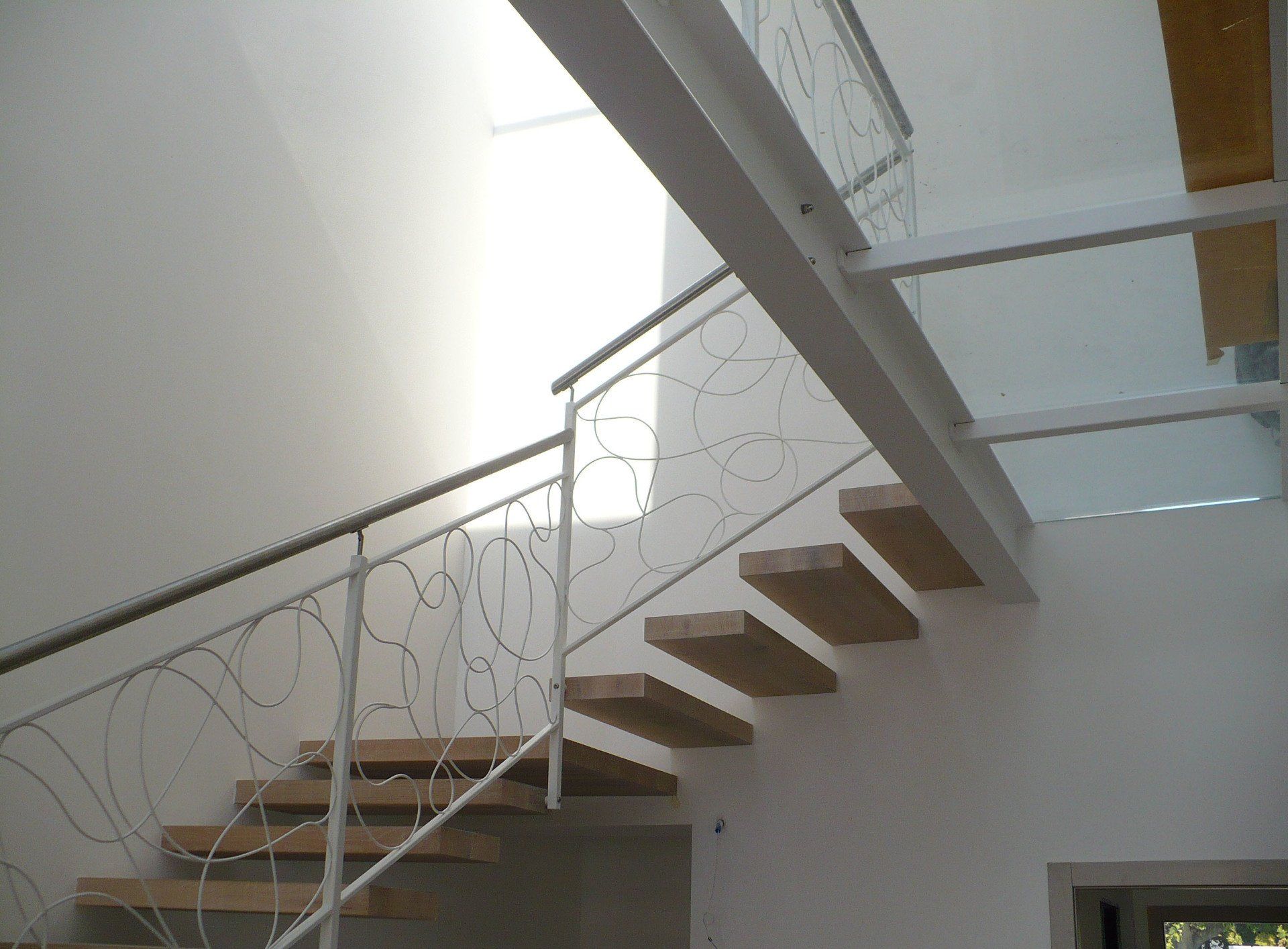 Chiusura vano scala interno in ferro sagomato verniciato.