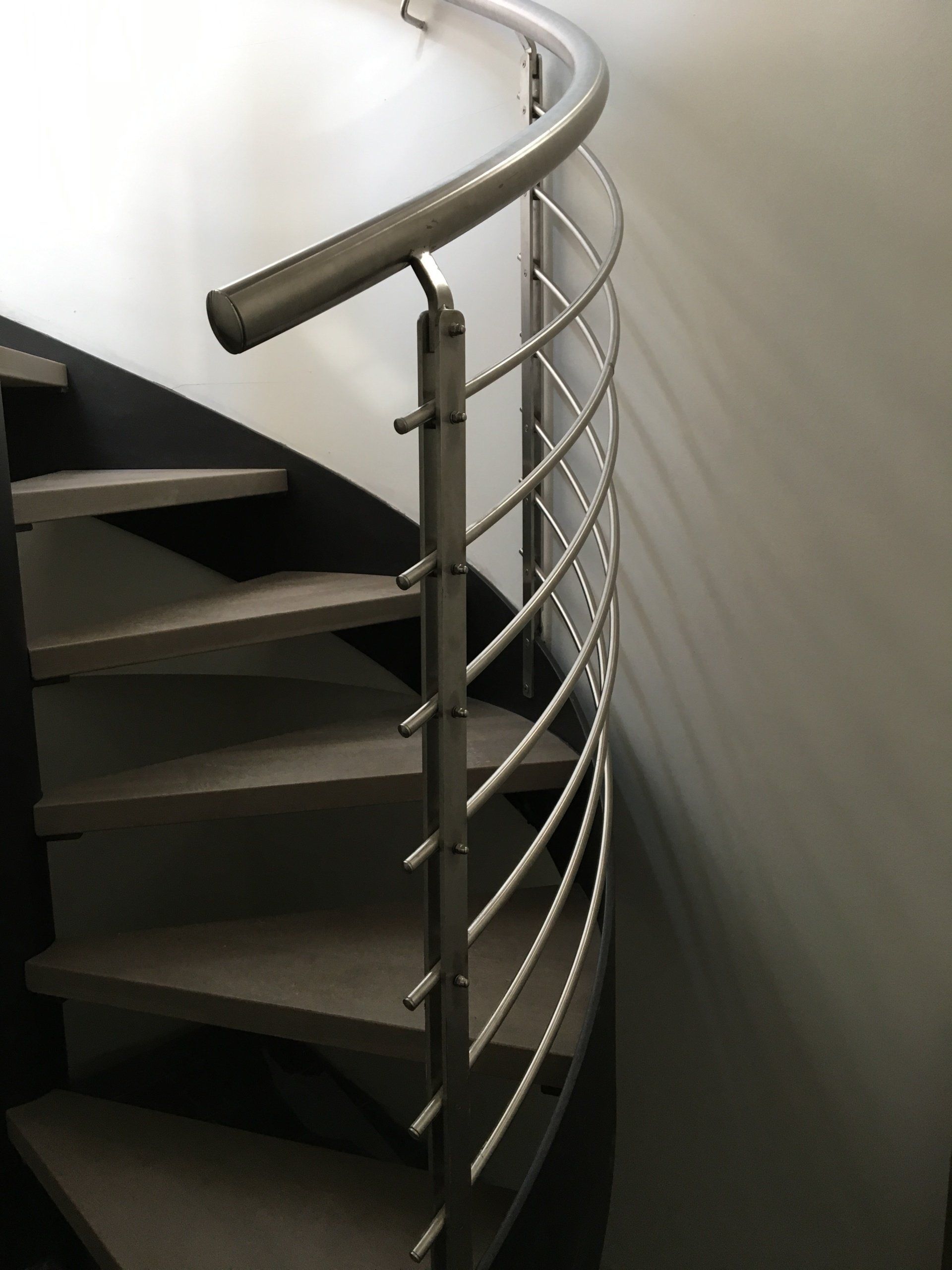 Parapetto scala curva interno in ferro verniciato.