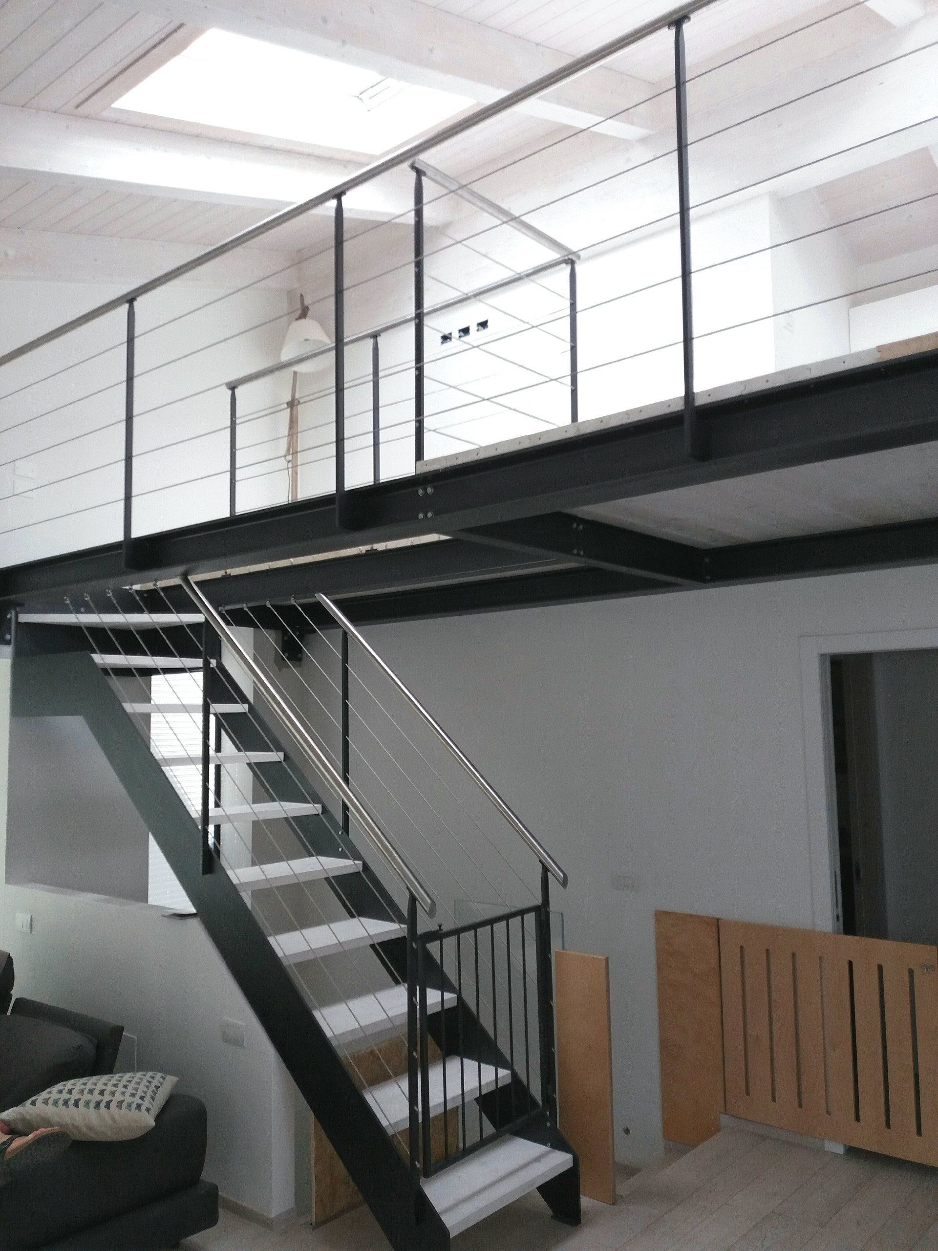 Scala interna zincata con parapetto lineare per soppalco.