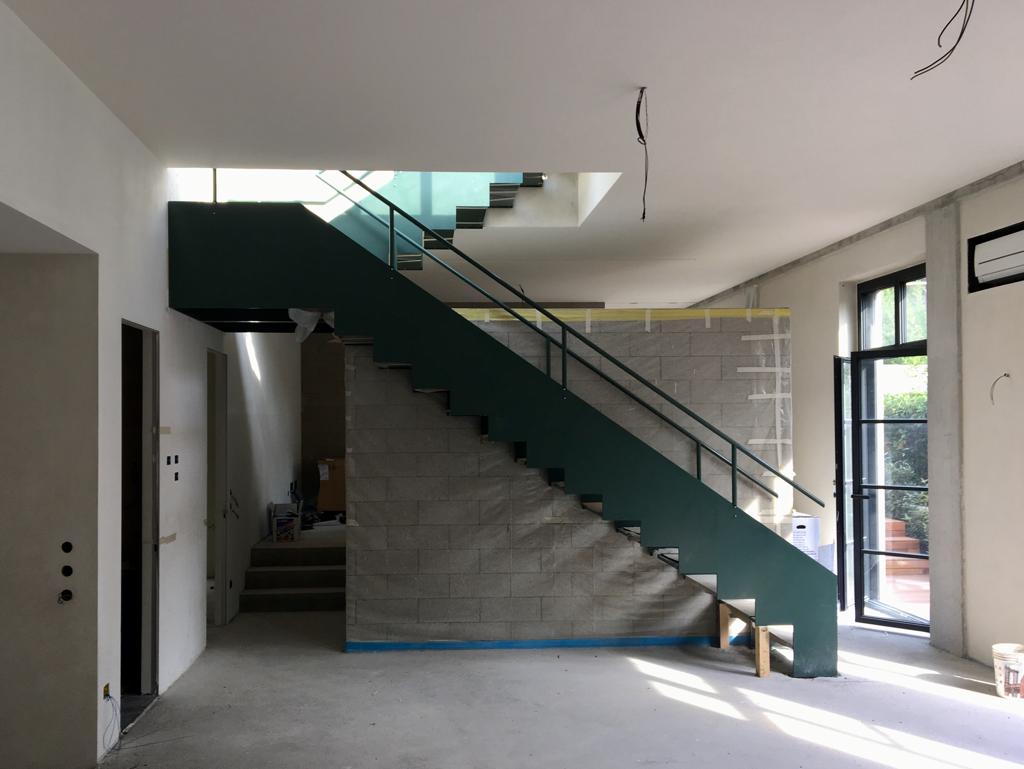 Parapetto scala interna in ferro verniciato.